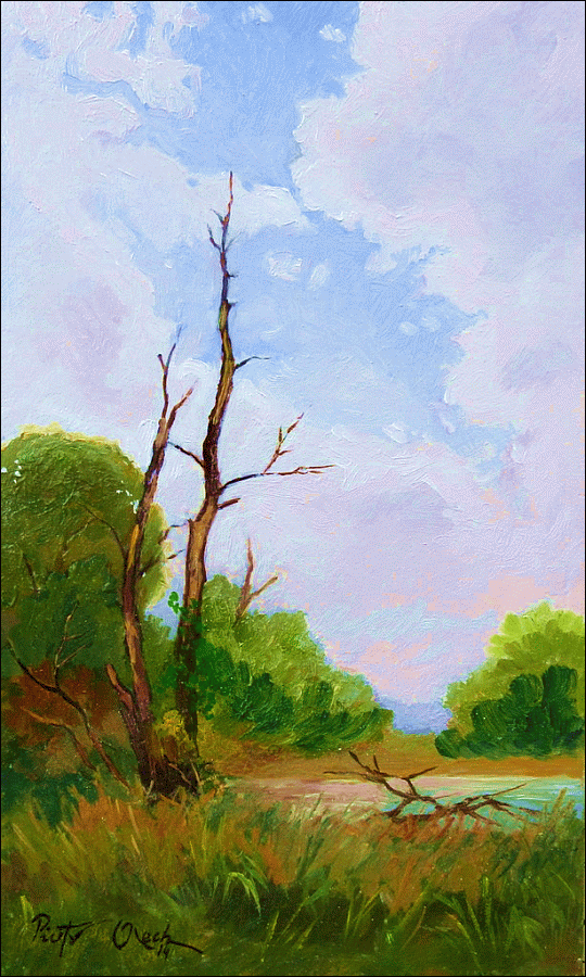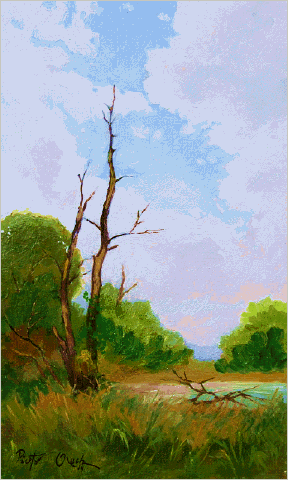 Endlich Wasser! Sein Ausruf kam ihm aus tiefstem Herzen. Seit Tagen zog er nun in des Sommers Hitze durch eine ausgetrocknete Ebene. Alles war dort vergilbt, überall fehlte den Pflanzen das Wasser. Er hatte das Laufen auf die Morgen- und Abendstunden beschränkt, sonst war es einfach zu heiß. Heute morgen hatte er sein letztes Wasser getrunken, denn sein Vorrat war erschöpft. Und hier um den Weiher herum stand alles in sattem Grün. Hier mußte das Grundwasser noch recht hoch stehen, so daß die Wurzeln es noch erreichen konnten. Der Einsame Wanderer beschloß spontan hier etwas länger zu verweilen. Sein Körper brauchte innen wie außen das Wasser dringend. Seine Wäsche konnte er hier auch waschen. Vielleicht konnte er bei dem niedrigen Wasserstand des Teiches auch ein paar Fische erhaschen. Leider hatte er keine Angelhaken mehr.