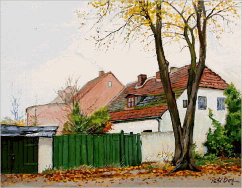 1. Bildmotiv : Idyll einer Kleinstadt > > > im Herbst – von innen – ohne Bürger – Blick geradeaus