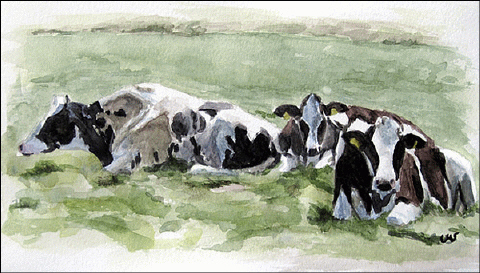 "... an dieser Stelle möchte ich mich besonders bei der Malerin Ulrike Miesen-Schürmann dafür bedanken, daß ich einige ihrer schönen Öl- und Aquarellgemälde, durch die ich erst auf sie aufmerksam wurde, zur Illustration einiger meiner Lieder verwenden durfte. Ihrem "Spatzen-Quartett" verdanke letztlich den Kontakt zu ihr, vier Bleistiftzeichnungen, die mehr als nur Skizzen sind, und nun das Lied "Die Sperlinge" mit einem Text von Joseph Freiherrn von Eichendorff illustrieren. – Ihr Schaffensbereich ist so vielfälltig wie ihr eigener Lebenslauf. Besonders markant fallen ihre Stilleben zu alltäglichen Dingen des Lebens auf. Was mag wohl Besonderes an einer Salami, einer Milchkanne und den vielen Früchten und Gemüsearten sein? Sie versteht es geschickt, alle in ein anderes Licht zu rücken, ihnen einen würdigen Moment zu verleihen. Und immer wieder bricht sie mit ihrer Arbeit zu neuen Ufern auf, es fällt sehr schwer, sie thematisch fassen zu wollen, zu unterschiedlich sind die Themen, Stile und Materialien ihrer Arbeiten. Ihre Lehrtätigkeit in Malkursen läßt sie im Lebendigen ankern, sie weiß woher sie kam, doch sie weiß aber auch wohin es noch gehen soll.