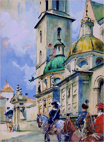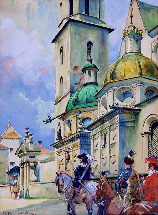 Jan auf Burg Wawel, um 1910 - Aqaurell