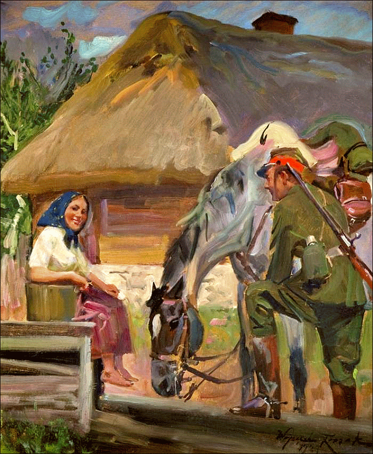 zu selbem Motiv : Mädchen mit Ulan am Brunnen / Ułan z dziewczyną przy studni (1941)