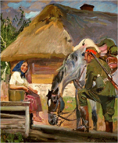 zu selbem Motiv : Ulan mit Mädchen am Brunnen / Ułan z dziewczyną przy studni (1941)