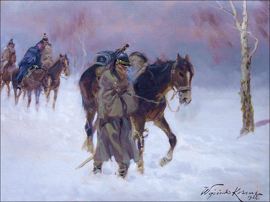 zum 1. Thema : Der Kälte trotzen / Ułan z koniem (1930)
