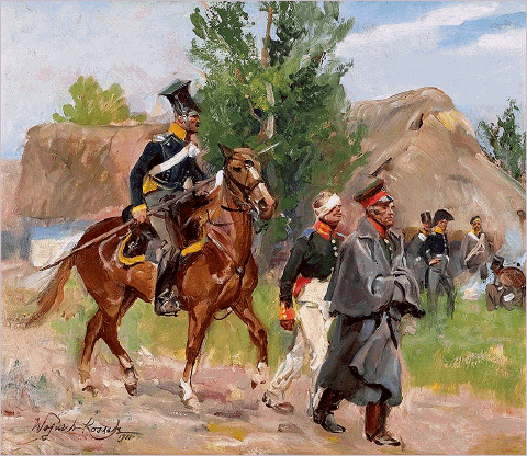 zu selbem Thema : Einen Russen gefangen / Ułan polski z rosyjskim jeńcem (1916)