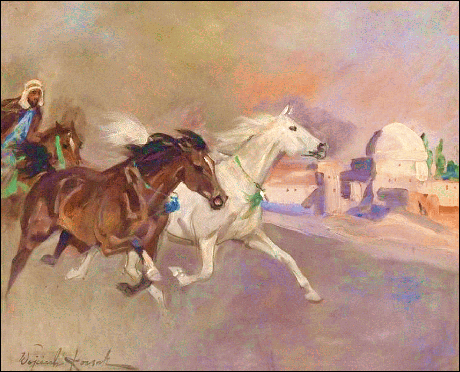 zu selbem Thema : Araber vor dem Beduinenzelt / Koń arabski na pustyni (1936)
