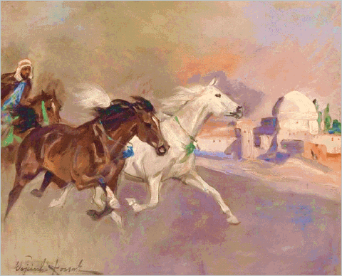 zu selbem Thema : Vor der Karawanserei / Konie arabskie (1936)