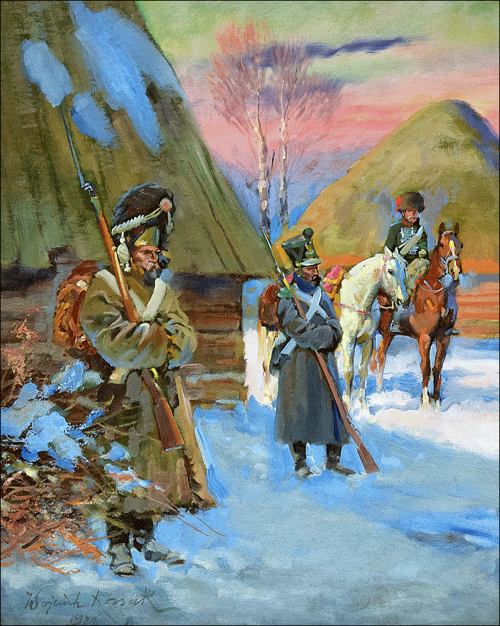 zu selbem Motiv : Soldaten auf Wache / Na posterunku - z epopei napoleońskich (1926)