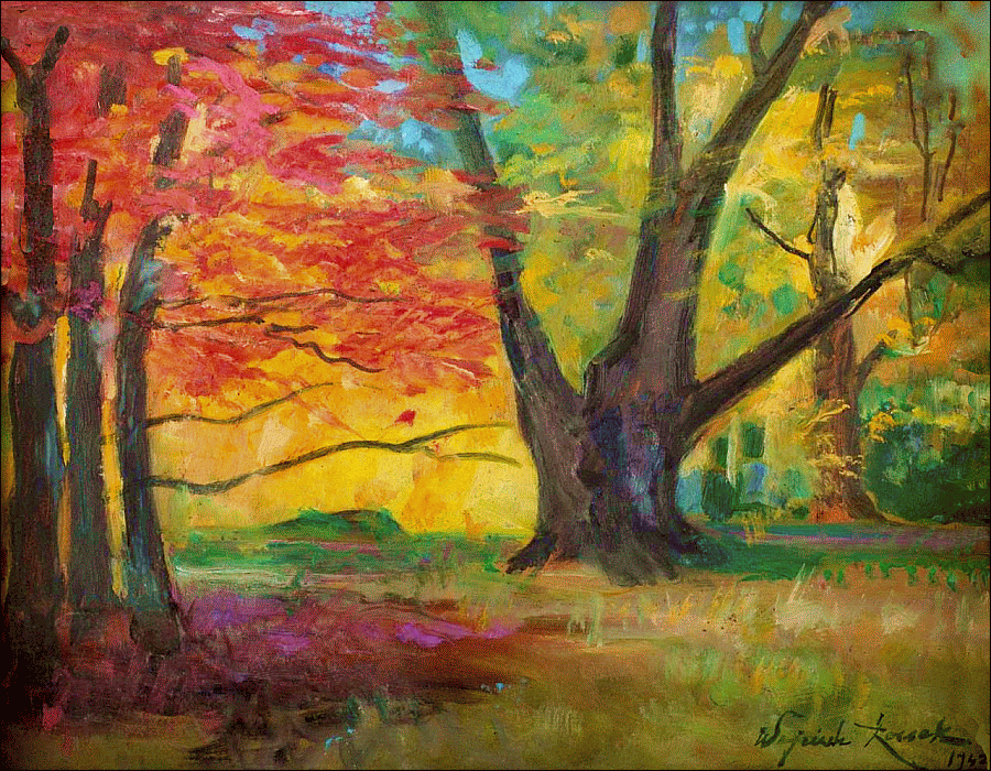 zu selbem Motiv : Feuer der Farben im Herbst / Las jesienią (1942)