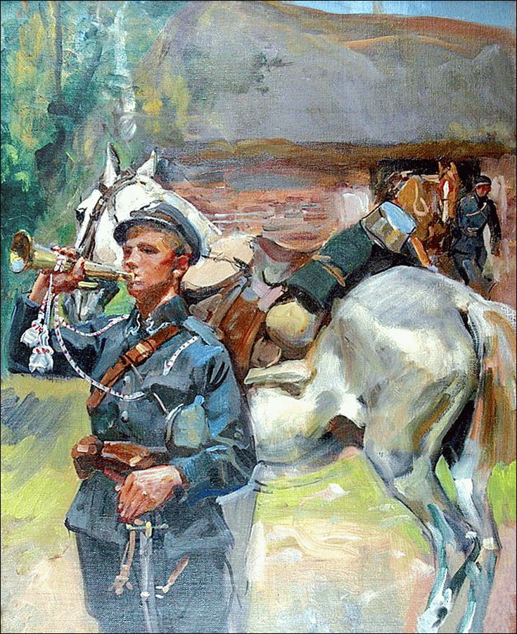 zu selbem Thema : Warnung eines Spähers / Trębacz z koniem (1931)