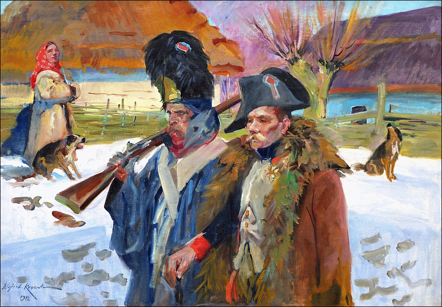 zu selbem Motiv : Rückzug nach der Niederlage / Dwaj grenadierzy (1912)